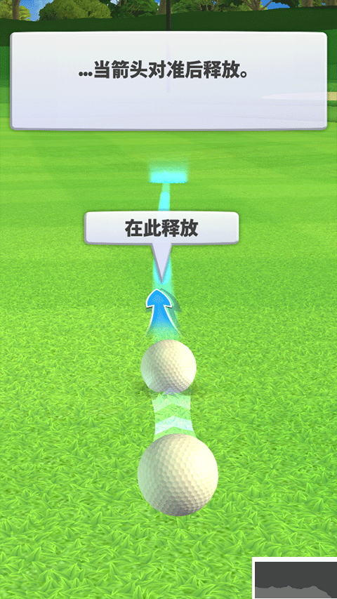 4、球近洞口,對(duì)準(zhǔn)拖球釋放;遠(yuǎn)則重復(fù)步驟,再次擊球。?