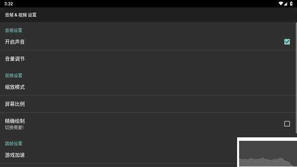 3、在音頻設(shè)置里可以設(shè)置聲音、幀率和加速等等