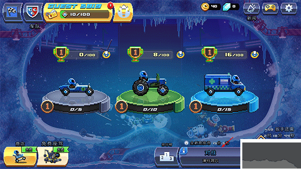 3、設(shè)置眾多任務(wù)與關(guān)卡,還有多樣獨(dú)特賽車等待解鎖,玩法豐富多變。