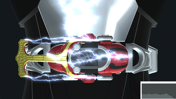 3、操作方式:點(diǎn)擊腰帶插入,搬動(dòng)部件完成變身,再次操作可放必殺、castoff。