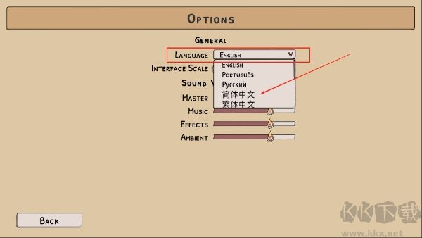 2、找到 language 下拉菜單,點(diǎn)擊展開(kāi)后選擇簡(jiǎn)體中文選項(xiàng),完成語(yǔ)言切換操作。
