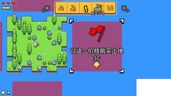 ● 打開“菜單欄”并點擊“購買土地”即可進入島嶼購買界面,使用金幣可購買相應土地