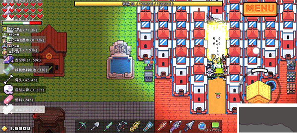 1、使用骷髏法杖召喚然后拿原子劍砍以掉落劇毒污泥和鈾(圖中在燈塔陣里刷只是習慣,實際是不需要燈塔陣)