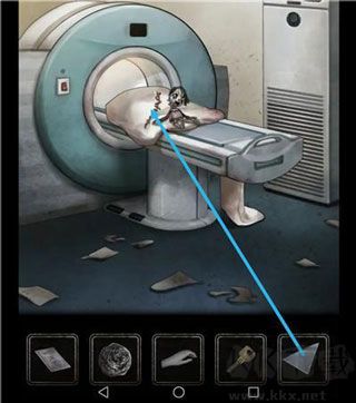 3、于 2011 房間用石頭砸鏡子,拾取地上玻璃片,至檢查室劃開特定位置。
