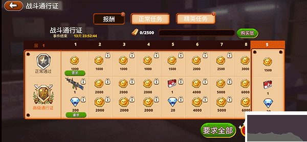 3、點(diǎn)擊戰(zhàn)斗通行證,隨著進(jìn)程提升等級,獲取相應(yīng)等級的獎(jiǎng)勵(lì)。?