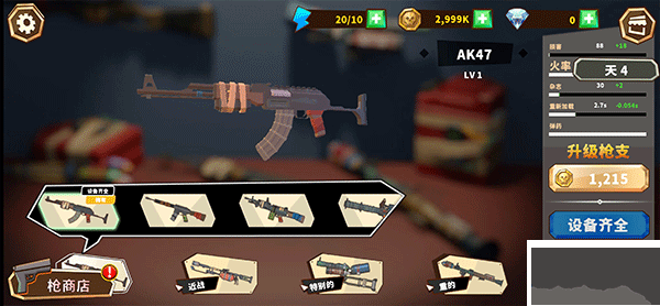 2、進(jìn)入槍商店,這里能購買各式各樣的槍械,還可對槍械進(jìn)行升級,增強(qiáng)火力。?