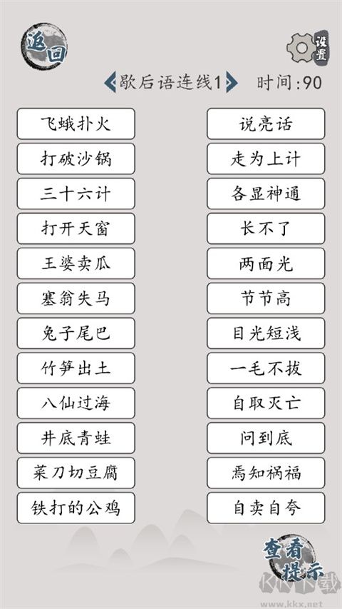 3、精彩的文字玩法,快速選擇字詞,按成語語義完成配對。