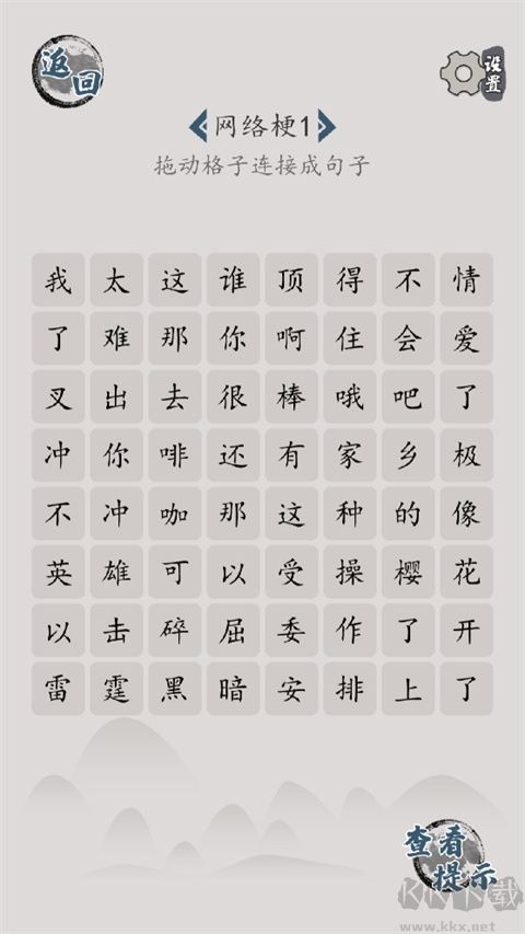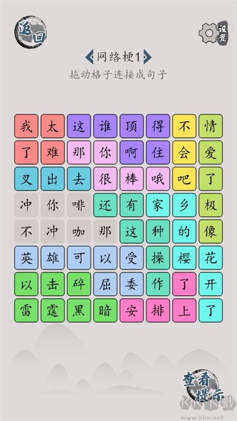 5、拖動格子連成句子,例如 “我太難了”“這誰頂?shù)米?rdquo;“像極了愛情” 等。