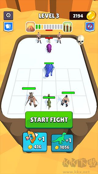 3、下方陳列射手和恐龍,消耗金幣即可購(gòu)買,點(diǎn)擊 “START FIGHT” 開啟游戲。