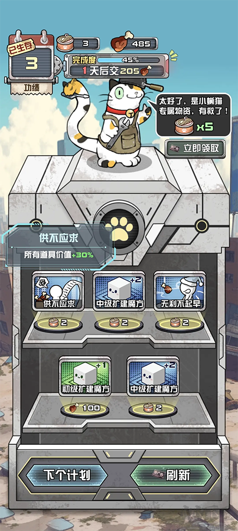 1、當(dāng)他人為生存資源奔波時,可憑借獨特 “躺平系統(tǒng)” 躺收各類物資。