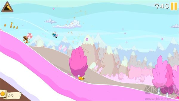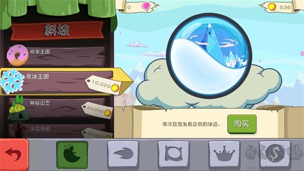3、穿梭冰雪王國、火焰王國、糖果王國等,避開周圍山脈與身后雪崩。