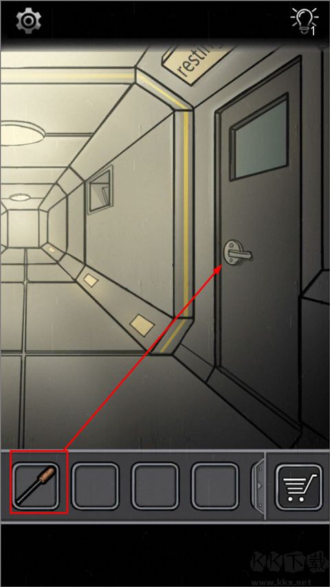 直行得到一根鐵棍,右行看到轉(zhuǎn)動(dòng)的風(fēng)扇,將鐵棍放入風(fēng)扇,螺絲刀擰螺絲,打開。