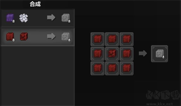 4、石頭:通過一個(gè)骨粉和八個(gè)腐化土,也能用八個(gè)肉塊加一個(gè)血石塊合成。