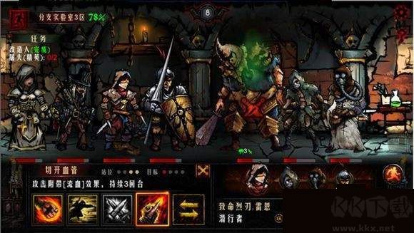 ???????2、第三關(guān)需要注意的是這個(gè)敵人,皮厚血多,而且會(huì)幫小嘍啰抗傷害,多用毒屬性攻擊和帶流血效果的技能就能迅速削弱他。