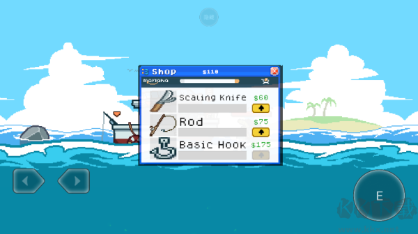 5、使用右上角的按鈕進(jìn)入商店購買升級您的刀,釣魚線,和鉤!
