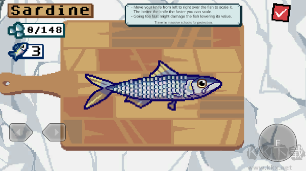 3、把你剛捕到的魚帶到Sardine站,在那里你可以給你剛捕到的魚魚鱗。一旦你完成了魚鱗魚,按下右上角的按鈕完成!