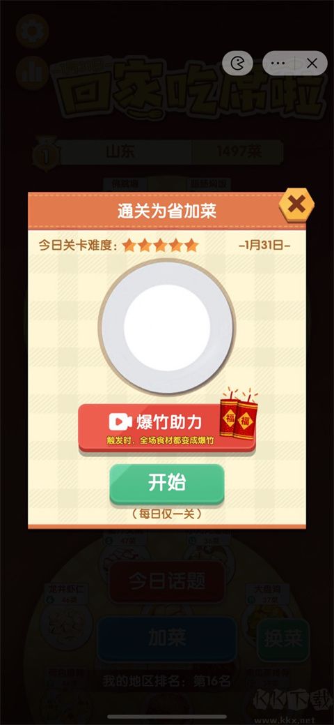 2、通過(guò)卡通形象為自己的省份加菜,點(diǎn)擊 “開(kāi)始” 按鈕啟動(dòng)玩法;