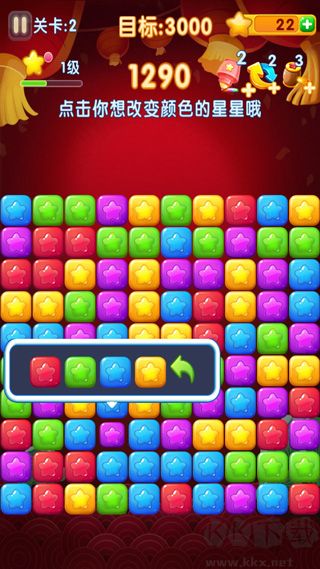 6、如果消除了所有可消除的星星沒有達到通關(guān)分數(shù),則會導(dǎo)致游戲結(jié)束哦。