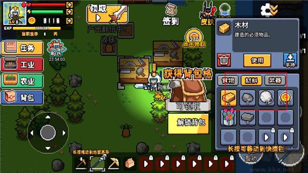 荒島求生模擬器無限金幣版是一款挺有意思的模擬闖關(guān)游戲,像素畫風(fēng),背景看著清爽。講的是外星機(jī)器人墜到荒島上,得在這兒活下去,最后修好飛船逃走。要幫機(jī)器人完成任務(wù),按右上角任務(wù)框的提示做就行,能升級、種東西、搜集材料、蓋東西、到處探索,慢慢擴(kuò)大生存的地方。里面還有不少地圖和能用的道具,跟著提示闖關(guān),體驗(yàn)跟別的荒島生存不一樣,挺新鮮的,想試試的話可以下來玩玩。