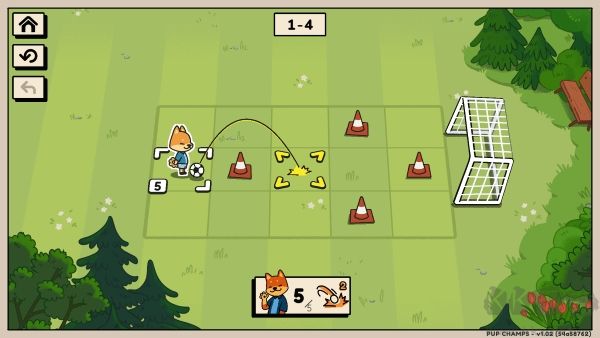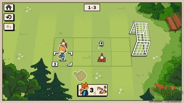 狗狗冠軍(Pup Champs))是一款體育類足球游戲,玩家控制狗狗小隊(duì)踢球,每個(gè)狗狗都有具體步數(shù),用完步數(shù)就把球踢進(jìn)球門??梢院脦字还饭放浜现鴣恚恐还饭愤M(jìn)球的方式不一樣,得合理安排它們的行動,才能解開更多球場謎題關(guān)卡。玩起來不復(fù)雜,就是琢磨怎么讓狗狗們配合好,把球弄進(jìn)門,挺有意思的,適合想輕松玩足球游戲的小伙伴試試。