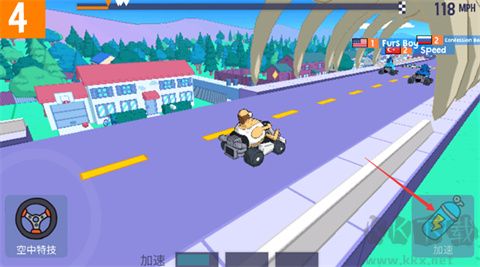 2、在比賽中可進(jìn)行跳躍、沖刺、漂移等操作,還能將對(duì)手踢出賽道,增加競(jìng)技趣味。
