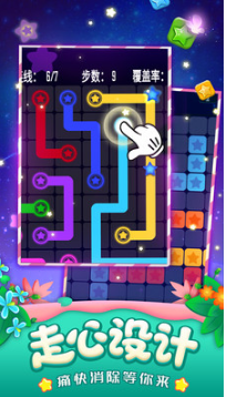 5、連線消除新玩法,連消星星,通過滑動(dòng)連接關(guān)卡內(nèi)同顏色的星星,在步數(shù)和覆蓋率的限制下,增加了玩家消除的緊張度和專注度