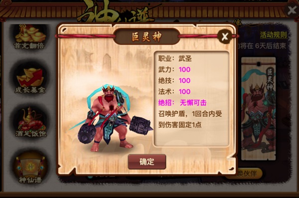 前期,也就是前7天,只要神仙譜不消失,請(qǐng)選擇巨靈神,但是要注意的是神仙譜持續(xù)7天。