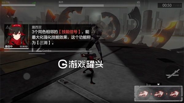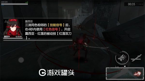 不同角色的技能指令引發(fā)的被動(dòng)技能是不同的,指揮官需要根據(jù)角色的特性選擇合適的消除策略。比如,當(dāng)露西亞在任意三消后4秒內(nèi)再次消除紅色信號(hào),可以觸發(fā)被動(dòng)技能:紅蓮雙刀,大幅增加物理傷害(圖3、圖4)。熟練利用不同隊(duì)員的被動(dòng)技能可以幫助指揮官更好地通過(guò)關(guān)卡。