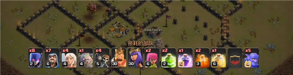 這是一套以野豬為主的流派,但是野豬要等到后期時(shí)機(jī)成熟才能放,前期主要是靠胖法或者天女進(jìn)行清理大部分邊路建筑,而且這個(gè)流派也比較靠援軍的藍(lán)胖,如果沒有藍(lán)胖,可能效果就沒有這么強(qiáng)勢了。