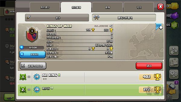 (2)部落會有不同的等級,各個(gè)部落成員上限為50人。各部落成員可通過參加部落對戰(zhàn)和部落競賽等玩法,來獲得一些部落經(jīng)驗(yàn)值,提升自己部落的等級。部落等級越高,可解鎖更多強(qiáng)大的部落特權(quán),部落特權(quán)有部落援軍返還相應(yīng)比例費(fèi)用、援軍增加相應(yīng)數(shù)量、寶庫額外儲藏空間增加相應(yīng)比例等。