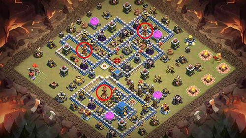 法師塔靠外組成防御鏈,讓蝙蝠的威脅大大降低。大本營(yíng)用多層城墻包圍起來,可以有效分流對(duì)方部隊(duì),也能起到很好的防御作用。