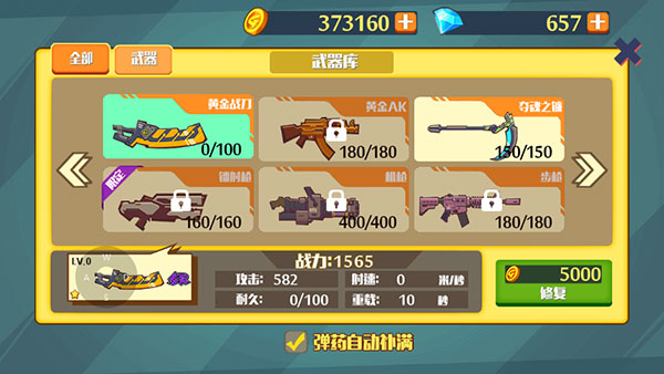 2、種類也是非常多,擁有槍械、各種黃金戰(zhàn)刀等,每個武器都有自己的屬性,玩家可以自由選擇;