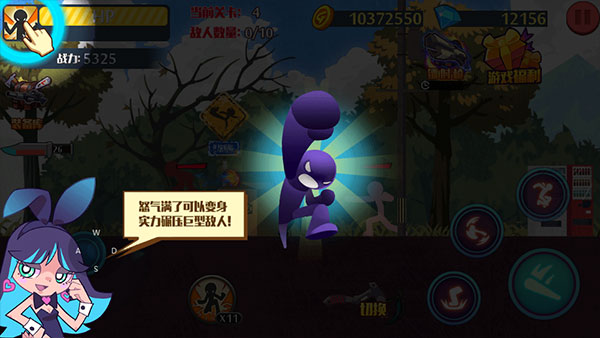 6、值得一提的是,每當玩家的角色怒氣值滿了的時候,還可以變化自己的巨型形態(tài),傷害會變得更高。