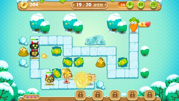 2. 豐富的關(guān)卡設(shè)計:游戲中有多個關(guān)卡,每個關(guān)卡都有不同的地形和敵人,玩家需要根據(jù)情況選擇合適的策略來保衛(wèi)蘿卜。