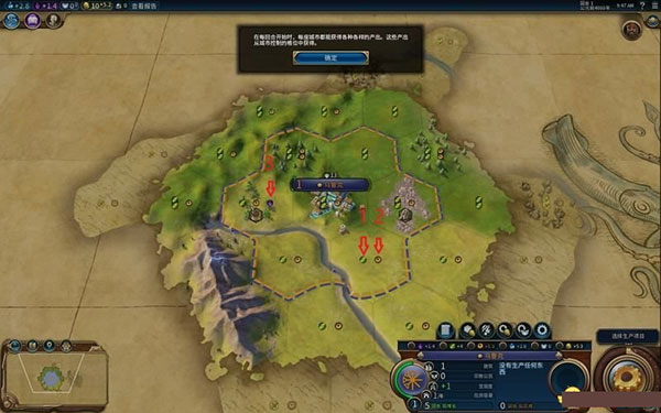 1、建造城市后,你會(huì)控制一片區(qū)域,通過購買、文化增長和征服合并,這個(gè)區(qū)域會(huì)增大。