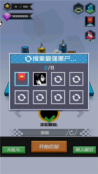 2、玩家可以選擇單人模式、匹配模式(8人競技)、大亂斗模式(16人同PK)三種模式。