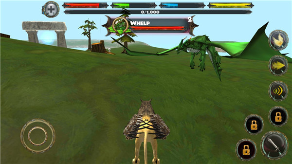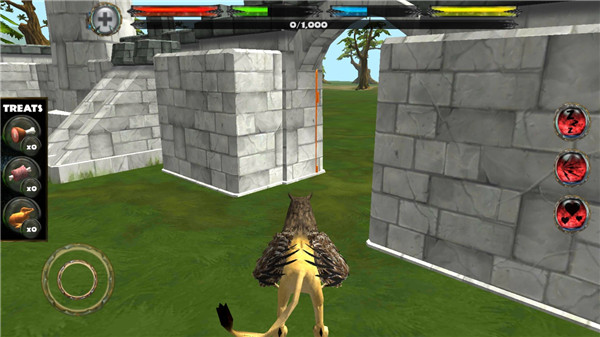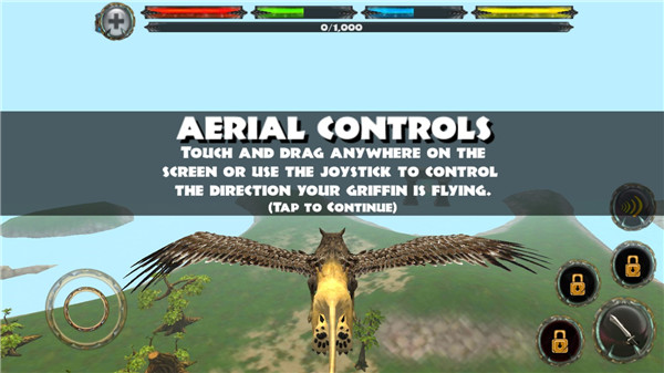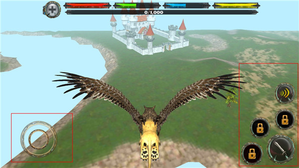 2、游戲中,左屏幕,可以控制獅鷲的移動的方向;