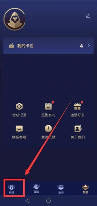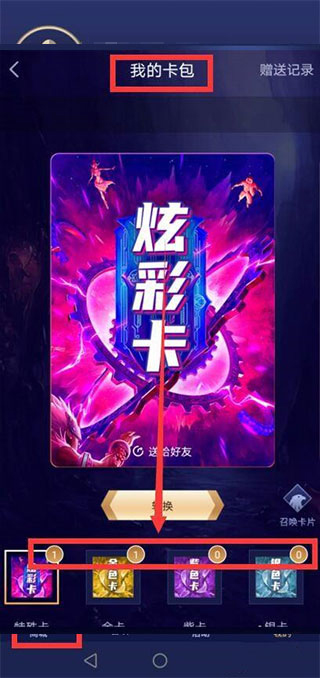 4、抽到卡牌后,可以點(diǎn)擊底部導(dǎo)航欄【我的】——【我的卡包】查看;