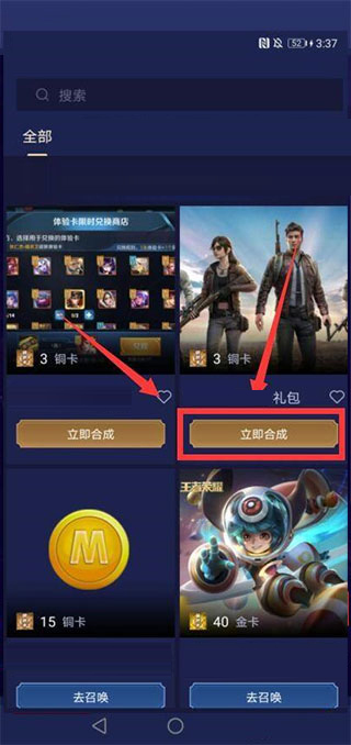 5、當(dāng)抽到的足夠的卡片,再返回去商城里選擇合成,即可領(lǐng)取該皮膚。