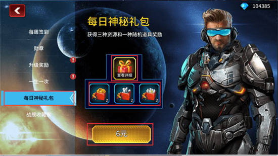 第三、福利中心里面的每日神秘禮包每天可以購買一次6元,可以獲取各5W的能源,外交一個隨機(jī)箱子,基本都是出強(qiáng)化材料和升星材料