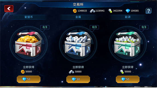 第四、行政大廳里面的交易市場每次需要花50水晶就可以購買5W的能源每天限購3次,加一次刷新,可能大家會想每天的水晶要那么多,后面還有一個這么獲取水晶的一個說明,后期大家可以去看一下,這么獲取水晶。