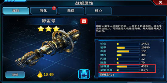 2、驅(qū)逐艦(禿鷲號)主要是大群體戰(zhàn)的時候作用最大,主要可以壓制群體戰(zhàn)艦不能移動和減低閃避,前期個人不建議升級這個