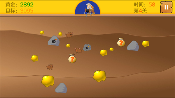 3、經(jīng)典的游戲玩法,利用鉤子去抓住各種物品,不斷的提高自己的財(cái)富。