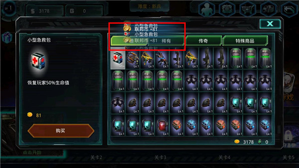 第三個(gè)圖標(biāo)為商店,玩家可以購(gòu)買裝備。