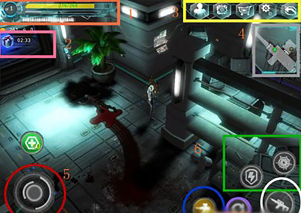 在屏幕左下角有一個(gè)虛擬搖桿,玩家利用該虛擬搖桿進(jìn)行移動(dòng)。