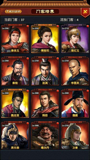 2、門客系統(tǒng),數(shù)十位朝中赫赫有名之士悉數(shù)登場