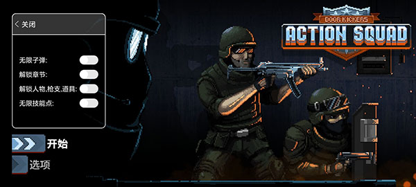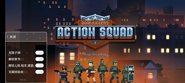 破門而入行動(dòng)小隊(duì)手游是什么游戲,好玩不?眾所周知,很多玩家都玩過射擊動(dòng)作類游戲,射擊游戲差不多都是移動(dòng)準(zhǔn)心,按下射擊按鍵就可以了,上手非常容易,今天kkx小編給大家分享的給玩家們介紹一款設(shè)計(jì)動(dòng)作類手游中的佼佼者,《破門而入:行動(dòng)小隊(duì)》。這款游戲是由由PixelShard , KillHouse Game推出的推出的一款像素風(fēng)橫版動(dòng)作射擊游戲,該游戲是以打擊恐怖分子為故事背景,玩家將以演一位特警隊(duì)員的身份去面對(duì)各個(gè)城市的恐怖分子和壞人,并且擊敗他們。為了讓大家玩的爽,kkx給大家分享的破門而入行動(dòng)小隊(duì)手游內(nèi)置修改器,可以開啟/關(guān)閉:無限子彈,解鎖章節(jié),解鎖道具/.槍支,無限技能點(diǎn),感興趣的朋友快來獲取吧!
