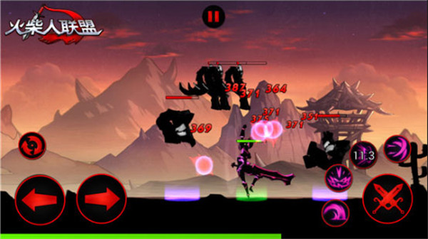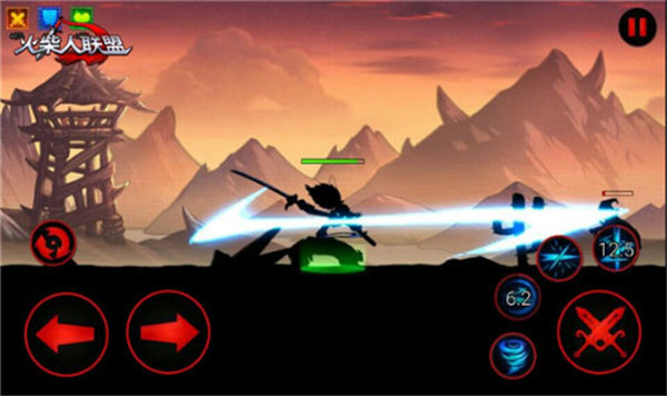 《火柴人聯(lián)盟》的格斗采用了類似于街機(jī)格斗游戲的操作方式。玩家可利用左側(cè)虛擬方向鍵,控制英雄前進(jìn)后退,并配合右側(cè)攻擊組合按鈕,完成普通攻擊和4種技能地釋放。值得一提的是《火柴人聯(lián)盟》支持雙英雄同時(shí)戰(zhàn)斗。戰(zhàn)斗中,玩家可隨意切換操控二者相互配合,體驗(yàn)不同于以往的格斗游戲新體驗(yàn)。