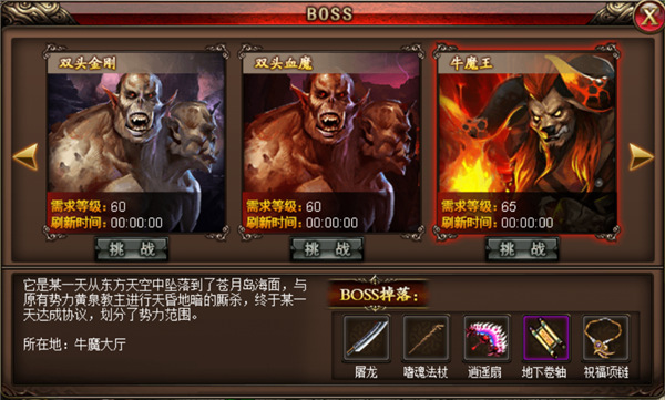 1、玩家需要達(dá)到挑戰(zhàn)的BOSS要求的等級(jí)。