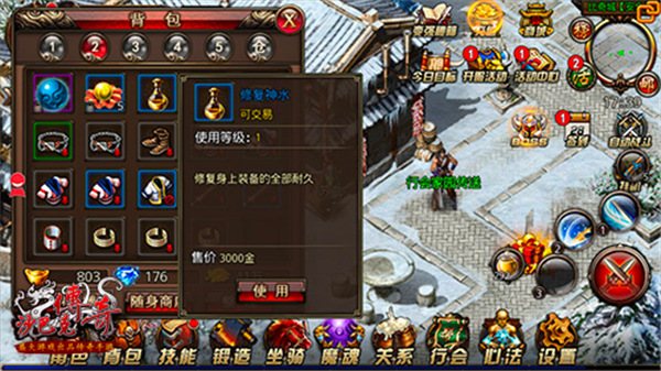 細(xì)心的你會(huì)發(fā)現(xiàn)在藥店老板那里還可以修復(fù)裝備耐久,不過(guò)我們這個(gè)祖?zhèn)骼现嗅t(yī)絕對(duì)不是蓋的,特為日常在外風(fēng)吹日曬怪物追的你(呃……好像暴露了什么 = =#)準(zhǔn)備了一款神藥“修復(fù)神水”,一經(jīng)使用就能瞬間恢復(fù)身上所有裝備的全部耐久,有沒(méi)有屌到飛起?